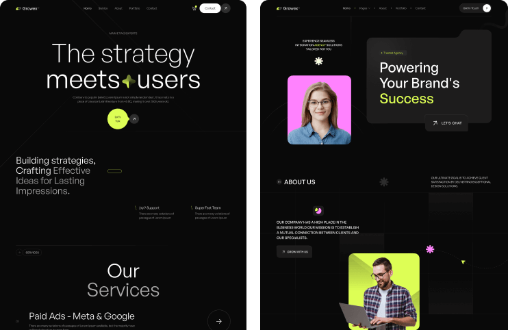 Grownix has 2 Stunning Home pages. Designed to build your marketing agency shine in the market